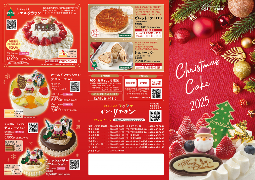 【クリスマスケーキご予約特典】お買い物券200円進呈!※詳細はパンフレットをご覧ください