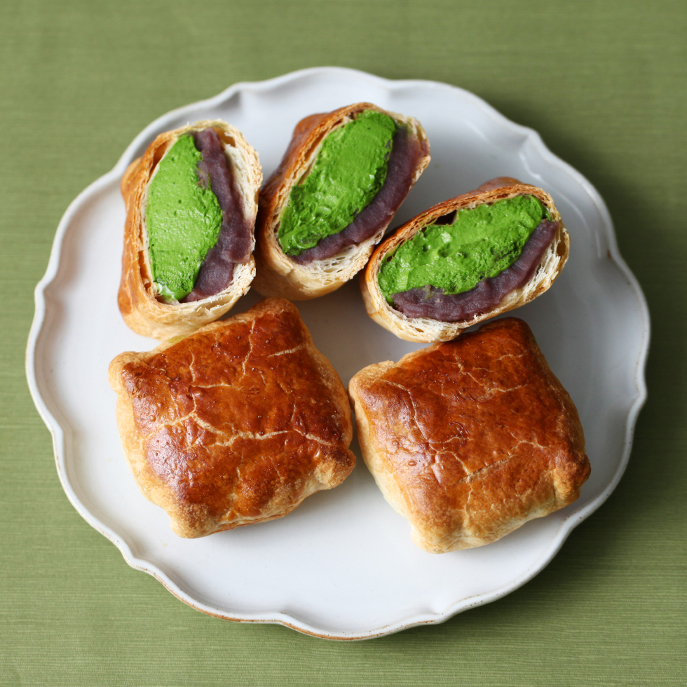 京都宇治の抹茶を使用した、ちょっぴりほろ苦い抹茶クリームと、なめらかなさらし餡、香ばしいパイとの相性抜群!