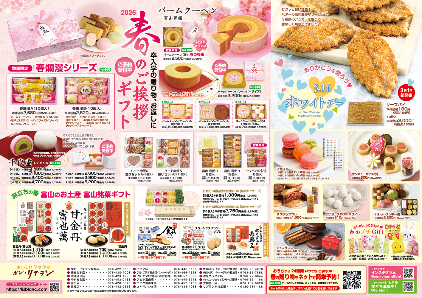 ニュース 商品 新着情報一覧 【チラシ】ひなまつりフェア♪春スイーツ&ギフト!ホワイトデーも! クリックすると拡大します ひなまつりケーキのご予約はネットでも可能♪ クリックすると拡大します Facebook postはてブLINEPocketFeedly