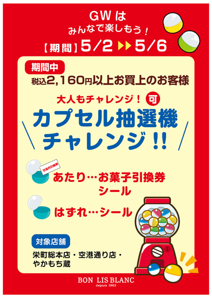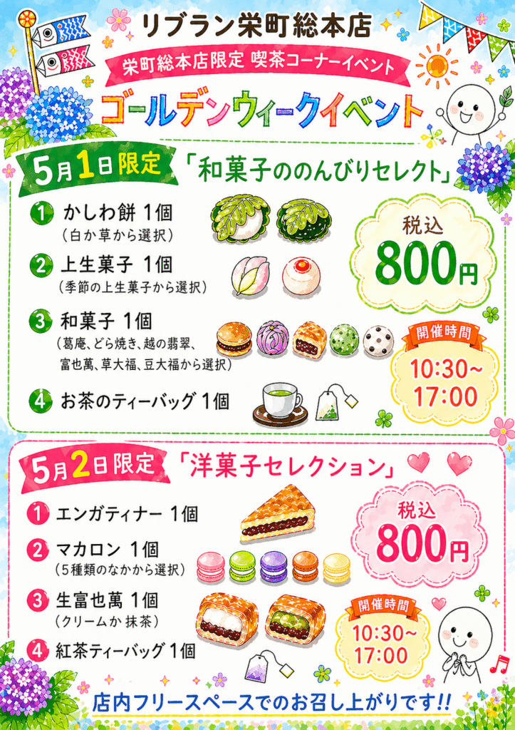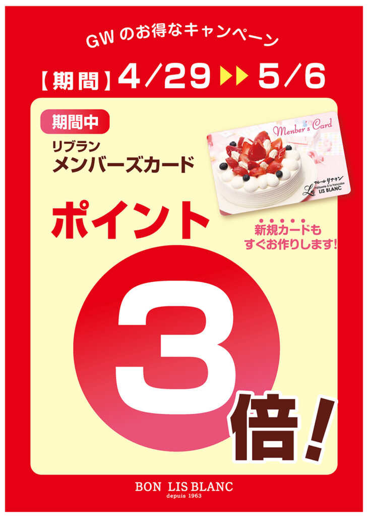 4/29~5/6迄の期間、リブラン各店にてGW企画を開催します!新商品の発売やお楽しみ企画、お得情報などお知らせします!