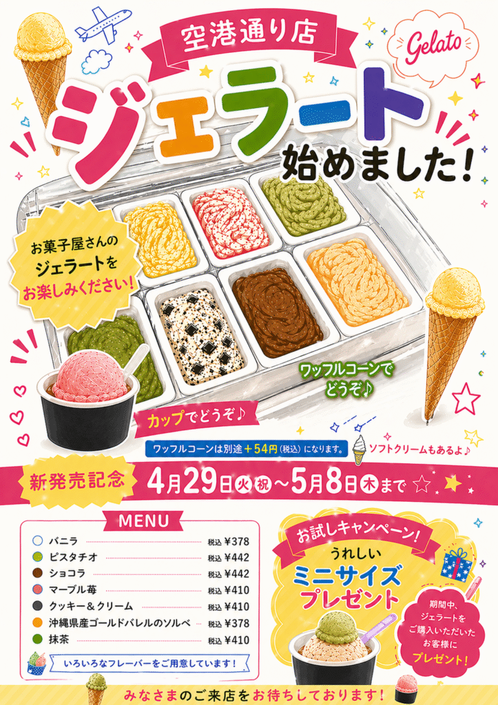 ●空港通り店で楽しむイベント!ジェラートお試しキャンペーン